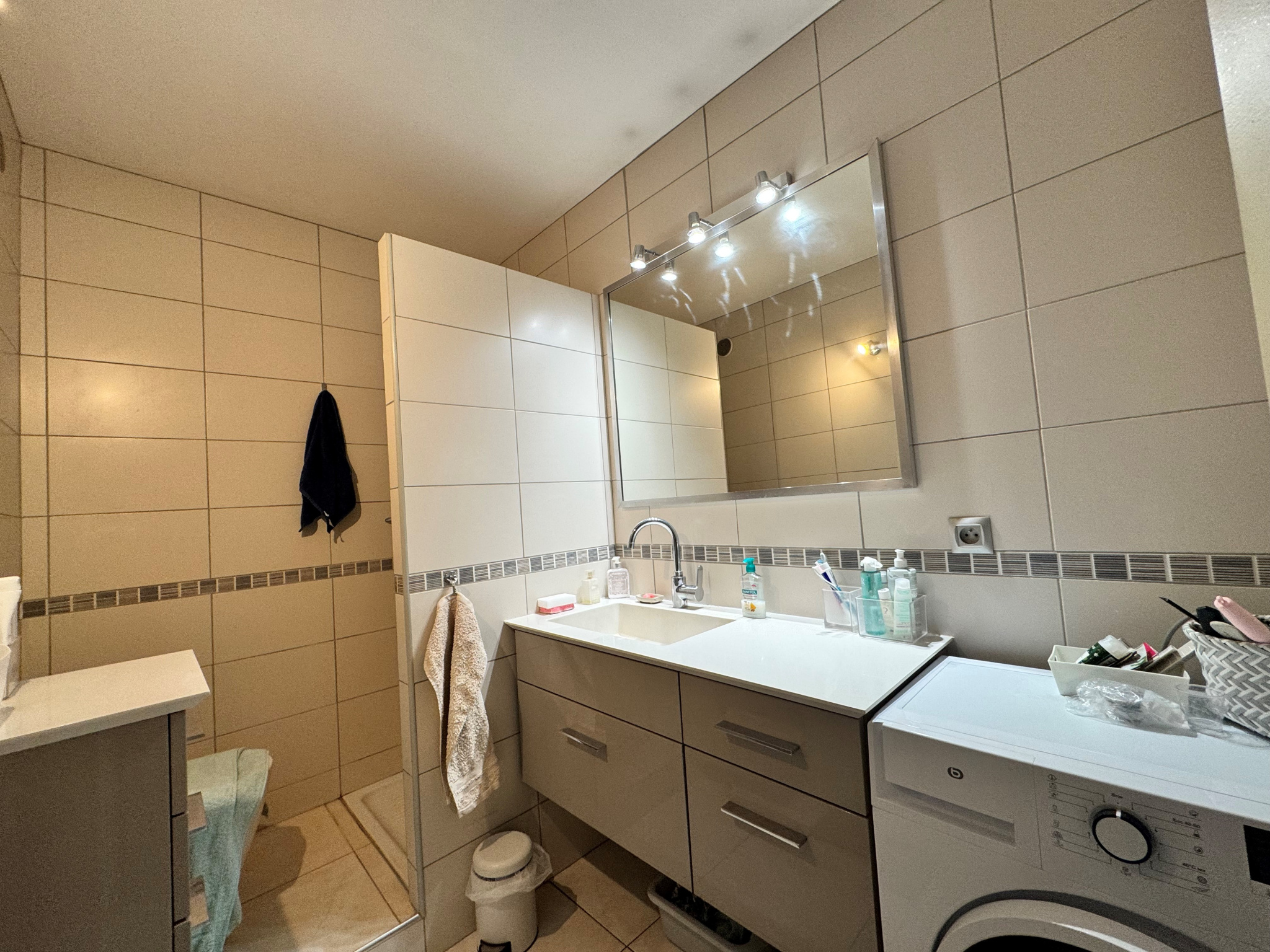 L26-226. Villefranche Centre dans résidence de standing, fermée, proche de la gare et de l'entrée d'autoroute. Joli T2, cinquième étage avec cave et et place de stationnement privative offrant séjour plein sud donnant sur grande terrasse, Hall d'entrée avec placard, cuisine équipée avec balcon, chambre exposée nord avec vue sur grand cèdre, salle de bains avec douche italienne, meuble vasque et meuble de rangement. Excellent entretien. LIBRE le 20/03/2026.