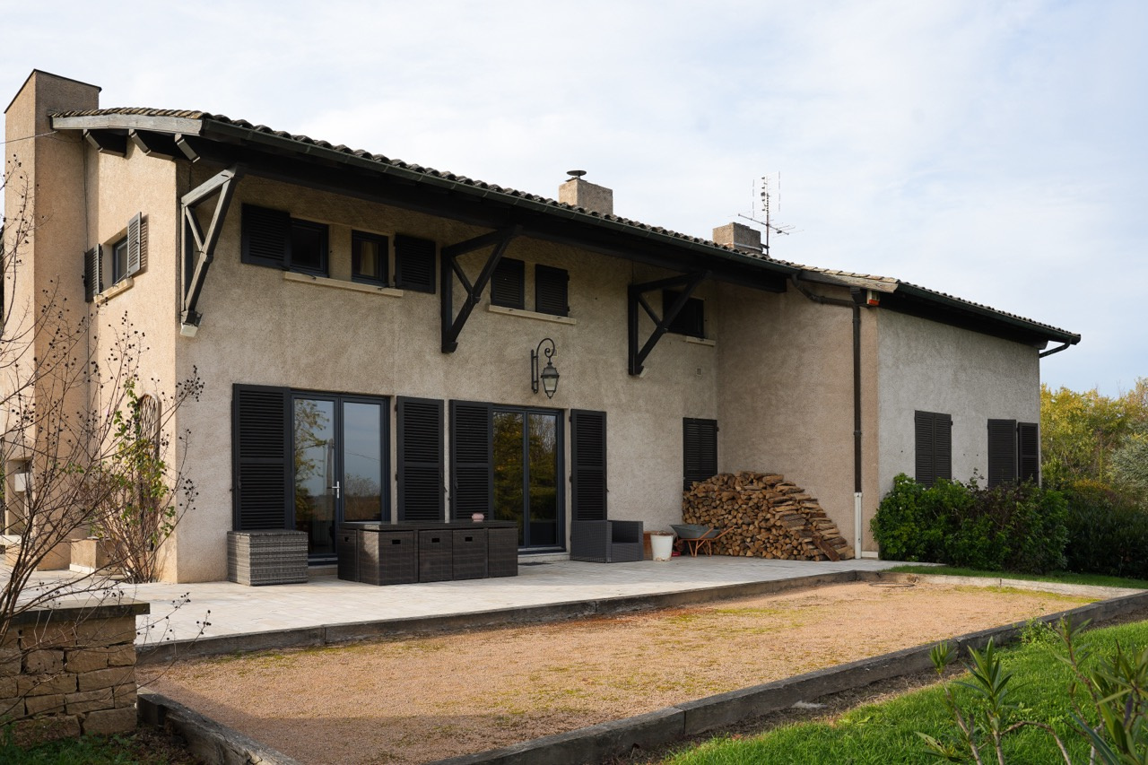 À l’extérieur, vous profiterez de deux terrasses, d’un terrain de boules et d’un jardin généreux, parfaitement aménageable pour une piscine ou un espace de détente.